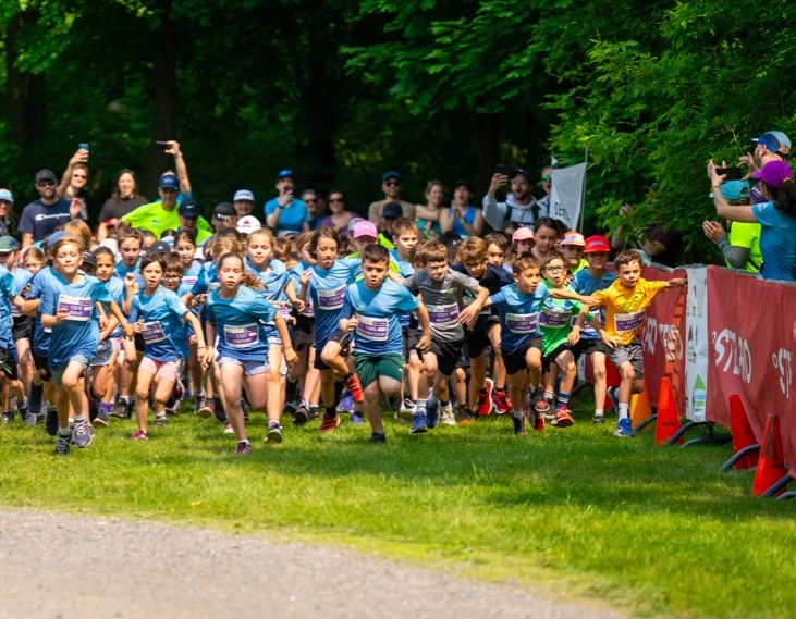 *: il y a un temps limite pour le 15 km et le 10 km étant donné que les coureurs utilisent le même bout de sentier pour les arrivées que celui des départs pour les enfants de la Petite virée qui partent à 10h. Pour des mesures de sécurité, si un coureur.se ne termine pas sa course à 10h, il/elle sera arrêté.e à 500 m de l'arrivée soit au virage des enfants et devra terminer sa course entre 2 départs de la Petite virée.